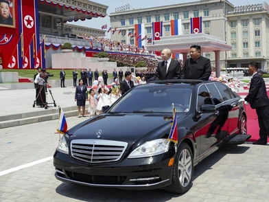 Όταν ο Κιμ επισκέφθηκε τη Ρωσία πέρυσι τον Σεπτέμβριο, ο Πούτιν του έδειξε ένα από τα μαύρα, θωρακισμένα οχήματά του. Ο Κιμ κάθισε δίπλα στον Πούτιν στο αυτοκίνητο και φάνηκε να το απολαμβάνει.