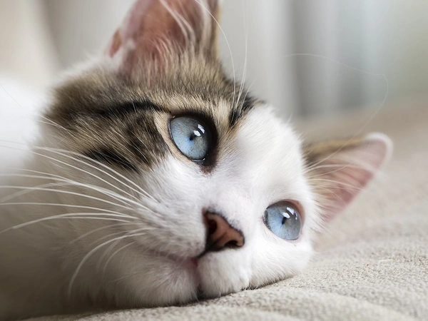 Οι γάτες με μπλε μάτια δεν διαθέτουν την πραγματική μπλε απόχρωση. Τα μπλε μάτια της γάτας είναι διάφανα λόγω της έλλειψης μελανίνης, αλλά βλέπουμε το μπλε χρώμα λόγω του φωτός που αντανακλάται γύρω από τις καμπύλες πλευρές της ίριδας.