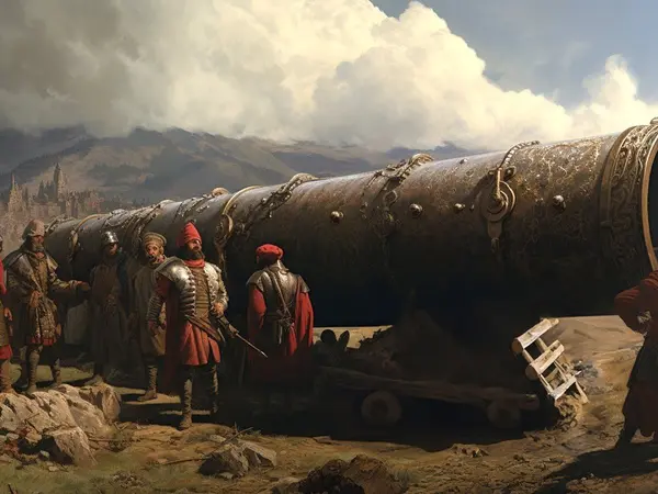Τον Ιανουάριο του 1453 ολοκληρώθηκε στην Ανδριανούπολη η κατασκευή του γιγάντιου κανονιού που ξεπερνούσε τα 9 μέτρα και ονομάστηκε «Βασιλική». Ήταν μία μπομπάρδα που είχε βλήματα από γρανίτη διαμέτρου 752 χιλιοστών. Το μέγεθός του όμως αλλά και το βάρος του, το έκαναν δύσχρηστο μιας και χρειαζόταν ώρες για να γεμίσει ξανά, κάτι που περιόριζε τη συχνότητα των πυρών του.