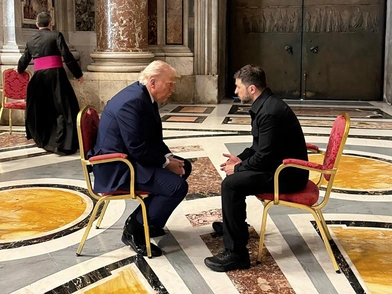 Ο Λευκός Οίκος έχει έκτοτε ασκήσει όλο και πιο επείγουσα πίεση για την επίτευξη ειρηνευτικής συμφωνίας στην Ουκρανία. Φωτογραφίες που δόθηκαν στη δημοσιότητα από την ουκρανική προεδρία έδειχναν τους δύο ηγέτες να συζητούν πρόσωπο με πρόσωπο χωρίς βοηθούς στο περίτεχνο περιβάλλον της βασιλικής του Αγίου Πέτρου.