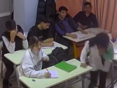 Όπως φαίνεται στο βίντεο που δημοσιεύθηκε στα κοινωνικά δίκτυα, το κορίτσι σηκώθηκε ξαφνικά από τη θέση του και έκανε νοήματα πως πνίγεται.