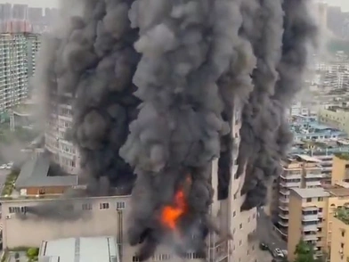 Σε πλάνα που μετέδωσε η κινεζική τηλεόραση και ανέβασαν χρήστες στα μέσα κοινωνικής δικτύωσης, διακρίνεται πυκνός μαύρος καπνός να υψώνεται από ένα κτίριο, σε έναν εμπορικό δρόμο στη Ζιγκόνγκ.
