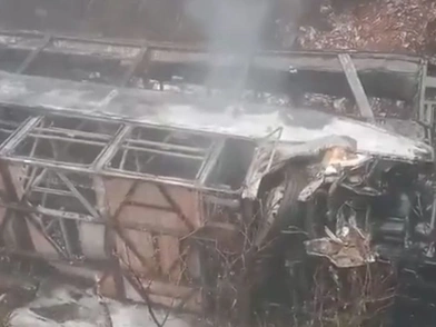 Οι 20 τραυματίες διακομίστηκαν σε διάφορες δομές υγείας στην περιοχή, πρόσθεσε η ίδια πηγή, διευκρινίζοντας πως το λεωφορείο βγήκε από τον δρόμο και έπεσε σε χαράδρα προτού πάρει φωτιά.