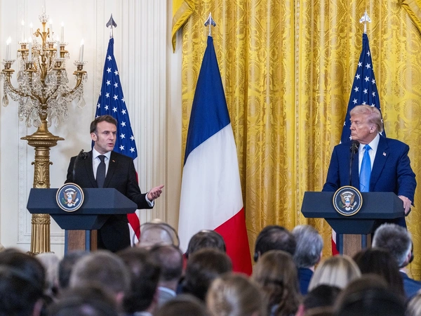 Ο Μακρόν τοποθετήθηκε στη συνέντευξη τύπου, λέγοντας ότι αυτός και ο Τραμπ είχαν πολύωρες συζητήσεις σχετικά με την επιθυμία τους να τερματίσουν τον πόλεμο στην Ουκρανία.