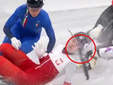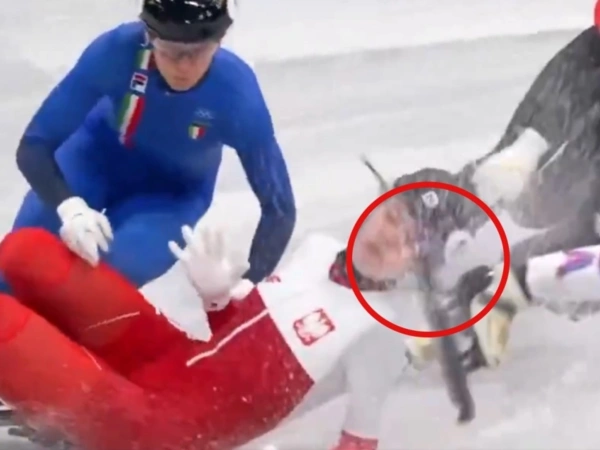 Σε μία στροφή λοιπόν η Πολωνή πατινέρ έπεσε στον πάγο έπειτα από σύγκρουση μέσα στο γκρουπ και το πόδι της Αμερικανίδας την πέτυχε στο πρόσωπο, με αποτέλεσμα να της πετάξει τα προστατευτικά γυαλιά και να την σκίσει κάτω ακριβώς από το μάτι.