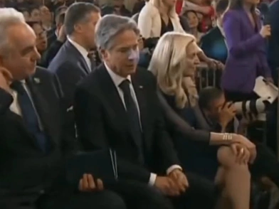 Την ώρα που ο Αμερικανός πρόεδρος έκανε τις δηλώσεις αυτές, κάμερα «έπιασε» την αντίδραση του Μπλίνκεν, που βρισκόταν στο κοινό.