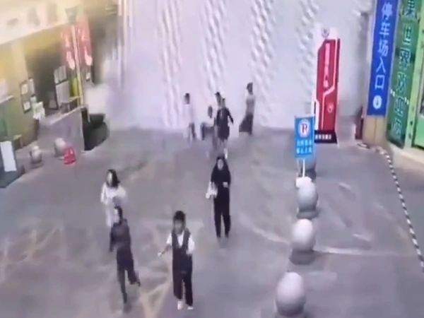 Βίντεο από κάμερα ασφαλείας κατέγραψε τη στιγμή που το νερό από την πισίνα έπεσε με δύναμη στον δρόμο παρασύροντας τον κόσμο που έτυχε να βρίσκεται στο σημείο.