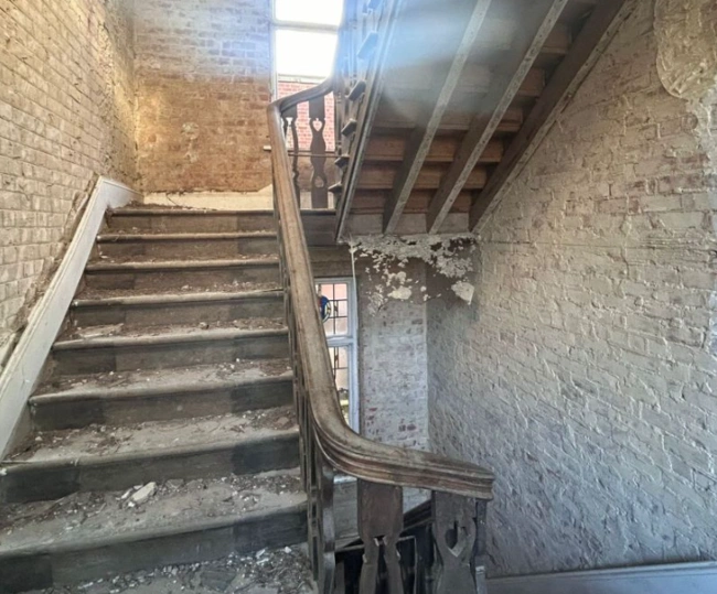 Οι φωτογραφίες δείχνουν πώς το κτίριο 154 ετών είναι ερειπωμένο με σπασμένα παράθυρα, γκράφιτι στους τοίχους, με απογυμνωμένες οροφές και δάπεδα.