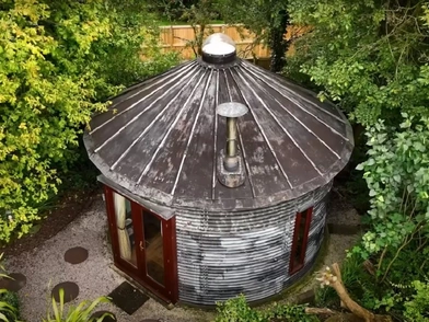 Έχει ύψος και διάμετρο περίπου τέσσερα μέτρα. Μία παλιά φιάλη υγραερίου χρησιμεύει ως DIY σόμπα για τον μικρό χώρο, που διαθέτει όλες τις ανέσεις, με κουζινάκι, μπάνιο, κρεβατοκάμαρα και σαλόνι.