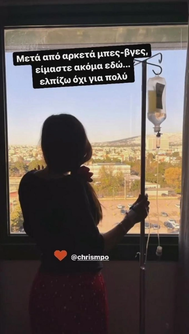 Την είδηση έκανε γνωστή ο σύζυγός της Σάκης Τανιμανίδης μέσω Instagram γράφοντας χαρακτηριστικά: «Μετά από αρκετά μπες – βγες, είμαστε ακόμα εδώ… ελπίζω όχι για πολύ».