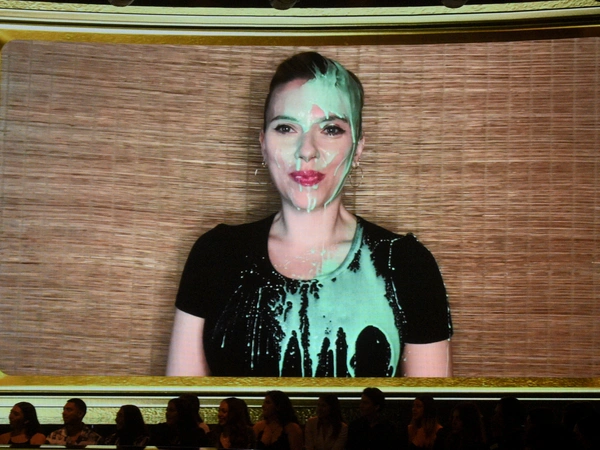 Η ηθοποιός άρχισε να φωνάζει, ενώ ο Τζοστ με ένα χαμόγελο λέει: «MTV! Λερωθήκατε!». Τότε η Τζοχάνσον του είπε ότι δεν είναι η σωστή τελετή και «Αυτό είναι από το Nickelodeon!».