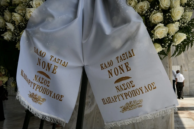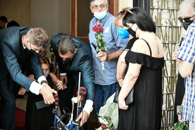 Ανάμεσα στα στεφάνια ήταν του Δημάρχου Πειραιά Γιάννη Μώραλη, της Υπουργού Πολιτισμού Λίνας Μενδώνη αλλά και του Υπουργού Τουρισμού Χάρη Θεοχάρη. Ο Μανώλης Καραντίνης που ήταν το μπουζούκι του 22 χρόνια μιλώντας στις κάμερες είπε «ήταν μεγάλη τιμή να μιλάει για μένα με τόσο όμορφα λόγια. Τον άκουγα από 6 χρονών και ήταν η αφορμή που έμαθα μπουζούκι, Ήταν ο πατέρας μου».