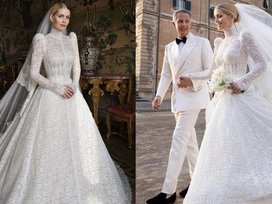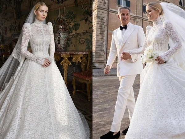 Η λαίδη Κίτι Σπένσερ φόρεσε ένα εντυπωσιακό νυφικό δημιουργία των Dolce & Gabbana - σε ντεφιλέ των οποίων έκανε τα πρώτα της επαγγελματικά βήματα ως μοντέλο, το 2017. Το μακρυμάνικο νυφικό από δαντέλα θύμισε σε πολλούς εκείνο -δια χειρός Σάρα Μπάρτον του οίκου Αλεξάντερ Μακουίν που φόρεσε η Κέιτ Μίντλετον στον δικό της γάμο, το 2011. Εκτός από το νυφικό, όμως, ο ιταλικός οίκος υψηλής ραπτικής επιμελήθηκε κι άλλες τέσσερις δημιουργίες για την Κίτι.