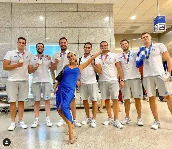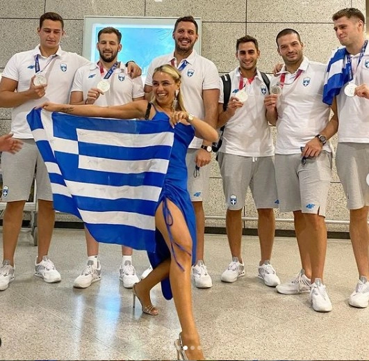 Η εθνική ομάδα πόλο ανδρών επέστρεψε λίγο μετά τις 12.00 το μεσημέρι της Τετάρτης (11/8) από το Τόκιο με το αργυρό μετάλλιο στο στήθος. Οι πολίστες δέχθηκαν την αποθέωση από τις συντρόφους τους, φίλους και συγγενείς. Ανάμεσα τους και η Κόνι Μεταξά, η οποία υποδέχθηκε τον αγαπημένο της, Μάριο Καπότση.