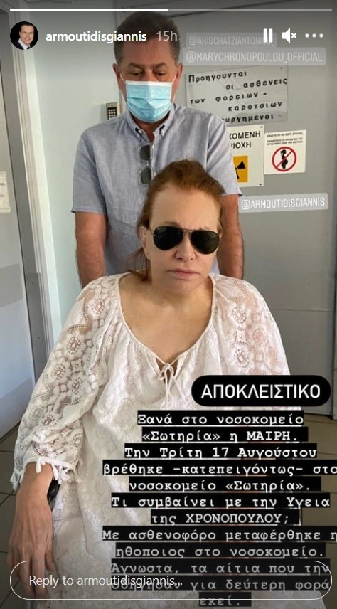 Διαβάστε ακόμη: Μαίρη Χρονοπούλου: Στο νοσοκομείο και πάλι η ηθοποιός - Ανησυχία για την υγεία της