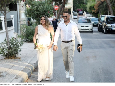 Το ζευγάρι επέλεξε το λευκό χρώμα για το ντύσιμό του και η νύφη έκλεψε τις εντυπώσεις με το φόρεμα που επέλεξε το οποίο ήταν μέσα στη μόδα, με έναν ώμο και τονίζοντας τη φουσκωμένη κοιλίτσα της. Μετά την τελετή πήγαν να γιορτάσουν σε ένα από τα παραλιακά καφέ ενώ οι ευχές στα social media δεν σταματούσαν να έρχονται στους προσωπικούς τους λογαριασμούς. Ο Κώστας Σόμμερ μάλιστα ανέβαζε συνέχεια βίντεο στο instagram. Το αγαπημένο ζευγάρι που μετρά δυο χρόνια σχέσης ετοιμάζεται σε λίγες ημέρες να υποδεχθεί στον κόσμο το πρώτο του παιδί, που είναι αγόρι.