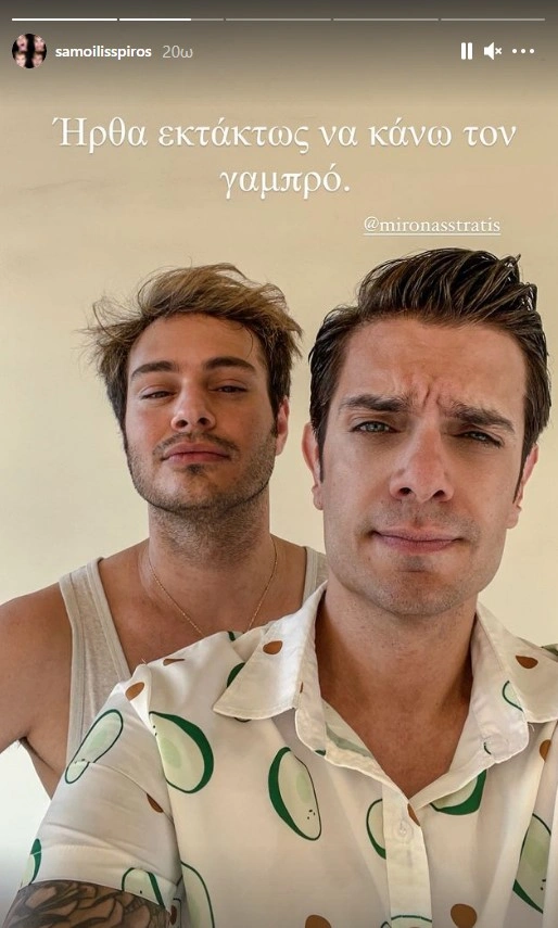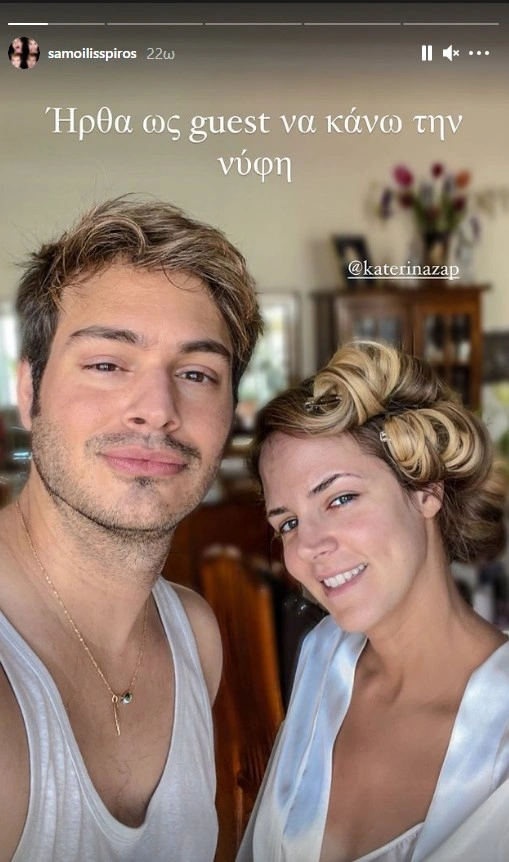 Ανάμεσα στους καλεσμένους ήταν ο γνωστός κομμωτής Σπύρος Σαμοΐλης, ο οποίος πόσταρε στιγμιότυπα στο Instagram τόσο από την προετοιμασία του ζευγαριού, όσο και από το πάρτι που ακολούθησε της τελετής.