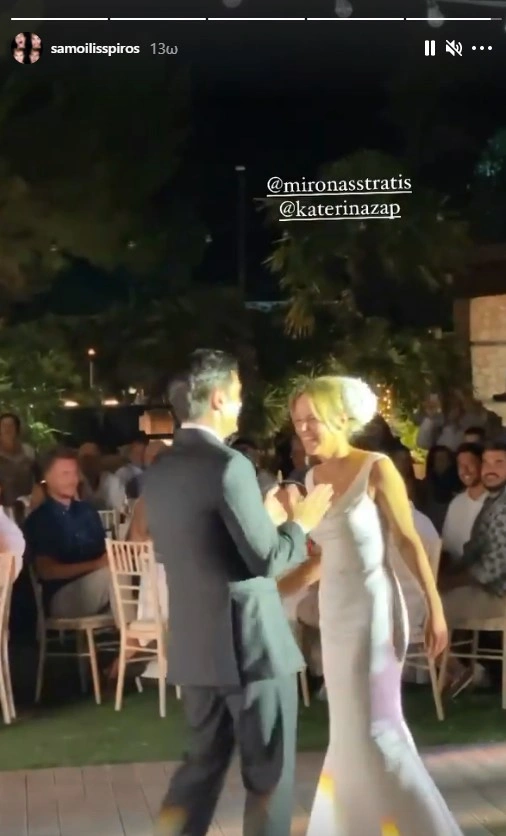 Η Κατερίνα Ζαπάρδα έλαμπε μέσα στο ρομαντικό νυφικό της. Γοητευτικός και ευτυχισμένος ο τραγουδιστής, που επέλεξε ένα μαύρο κοστούμι.