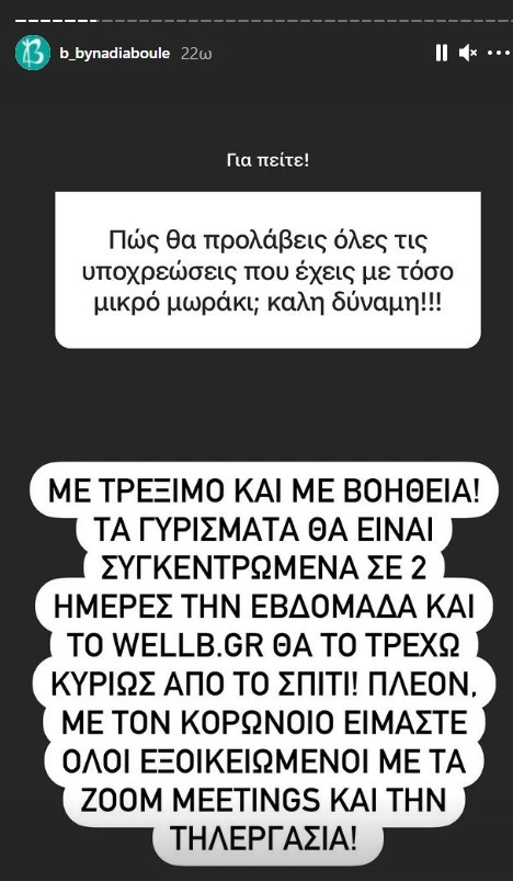 Οι followers της στο Instagram αναρωτήθηκαν "Πώς δεν φοβήθηκες να κάνεις το εμβόλιο; Είχε παρενέργειες σε πολύ κόσμο" με τη Νάντια Μπουλέ να απαντά "Φοβήθηκα να μην κολλήσω κορονοϊό και να μην τον μεταδώσω. Γι'αυτό και το έκανα". Μία άλλη ερώτηση ήταν "Μπαίνω στον 7ο μήνα και ο γιατρός μου είπε ότι πρέπει να κάνω το εμβόλιο. Ποια η άποψη σου;" με την ηθοποιό να απαντά "Η άποψη μου είναι πως πρέπει να ακούμε τους ειδικούς. Κι εγώ το έκανα, ενώ θηλάζω".