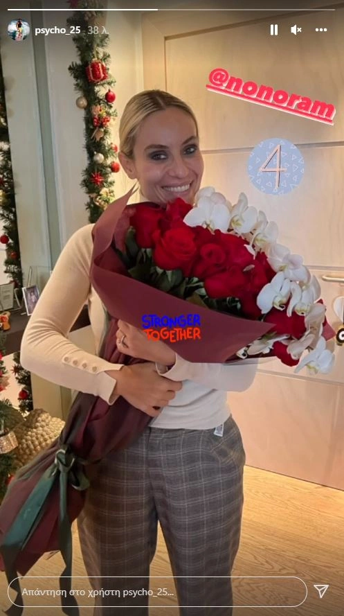 Με τη σειρά του ο Θοδωρής Μαροσούλης ανέβασε σε insta story μια φωτογραφία της Ελεονώρας Μελέτη με μια εντυπωσιακή ανθοδέσμη με αφορμή τα τέσσερα χρόνια γάμου και έγραψε «μαζί πιο δυνατοί».