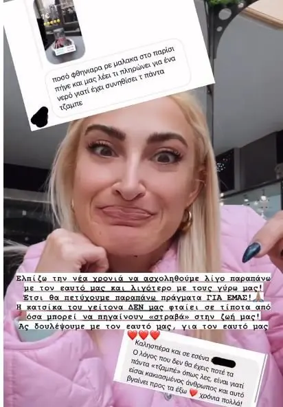 “Χθες γνωστο-φίλη μου, νομίζω ότι πάει να στείλει μήνυμα σε άλλον και να με κράξει και κατά λάθος το στέλνει σ’ εμένα” αναφέρει η Ιωάννα Τούνη στο story που δημοσίευσε. Το συγκεκριμένο μήνυμα ανέφερε χαρακτηριστικά: «Πόσο φθηνιάρα ρε μ.... στο Παρίσι πήγε και μας λέει τι πληρώνει για ένα νερό γιατί έχει συνηθίσει τα πάντα τζαμπέ».