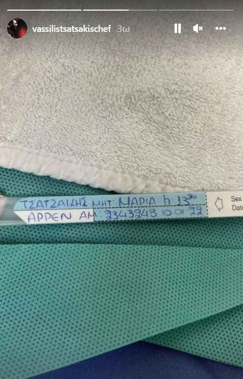 Η Μάρα Δαρμουσλή γέννησε ένα υγιέστατο αγοράκι και τα ευχάριστα νέα ανακοίνωσε μέσω του προφίλ του στο Instagram ο Βασίλης Τσατσάκης με insta story όπου ανέβασε φωτογραφία με το βραχιολάκι του νεογέννητου μωρού.