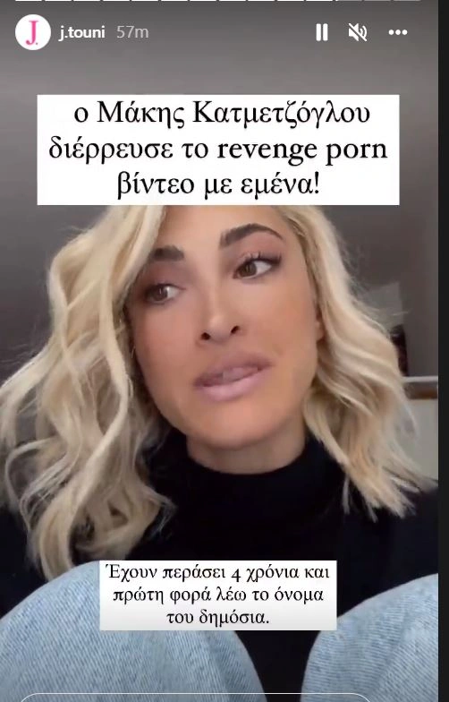 Είχε προηγηθεί λοιπόν η καταγγελία της Ιωάννας Τούνη η οποία επέλεξε μέσα από τον προσωπικό της λογαριασμό στο Instagram να επανέλθει στην ιστορία με το βίντεο από προσωπικές της στιγμές, που διέρρευσε στο διαδίκτυο πρώην σύντροφος της με την μορφή του revenge porn, το βράδυ του Σαββάτου. Αφορμή στάθηκαν σχόλια που θέλησαν να εμπλέξουν το όνομα επιχειρηματία με τον φερόμενο βιασμό 24χρονης στη Θεσσαλονίκη.