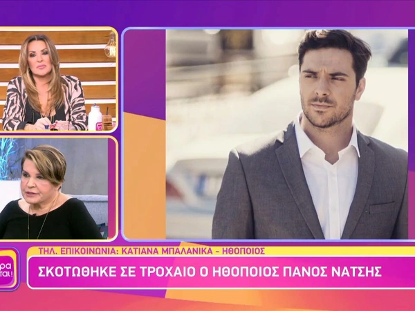 Συντετριμμένη είναι η Κατιάνα Μπαλανίκα, αφού ενημερώθηκε για την είδηση του χαμού του Πάνου Νάτση. Ο ηθοποιός έφυγε από τη ζωή σε ηλικία 31 ετών, μετά από τροχαίο ατύχημα που είχε με τη μηχανή του. Σε ζωντανή σύνδεση με την εκπομπή «Καλύτερα δε γίνεται», η Κατιάνα Μπαλανίκα μη μπορώντας να συγκρατήσει τα δάκρυά της, δήλωσε πως δεν μπορεί με τίποτα να «χωνέψει» τον χαμό του.