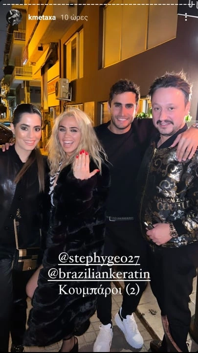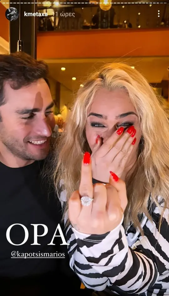 Δείχνει στην κάμερα το εντυπωσιακό μονόπετρό της, ενώ τα Stories της τα αναδημοσίευσε και ο Μάριος Καπότσης.