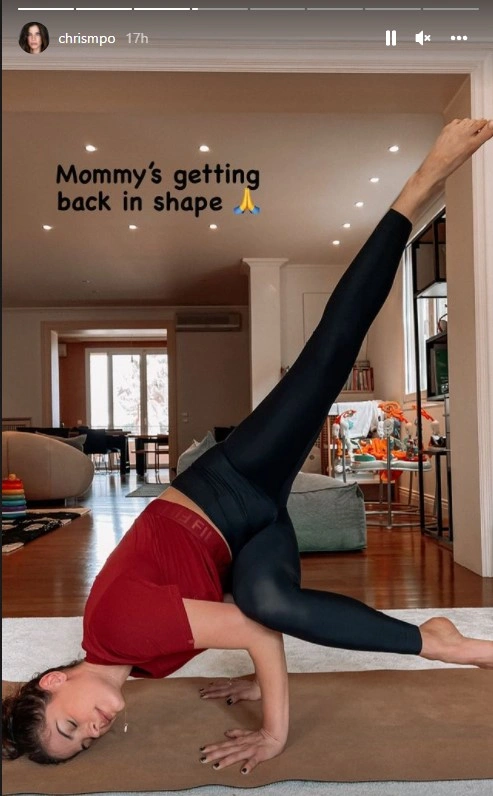 Σε story της στο Instagram έκανε μία ανάρτηση που γυμνάζεται μαζί με τις κόρες της, γράφοντας σε σχόλιο «ομαδική γιόγκα», ενώ ακολούθησε ένα story με την ίδια να κάνει μια από τις στάσεις yoga, δείχνοντας να το απολαμβάνει και να σχολιάζει «Η μαμά μπαίνει ξανά σε φόρμα».