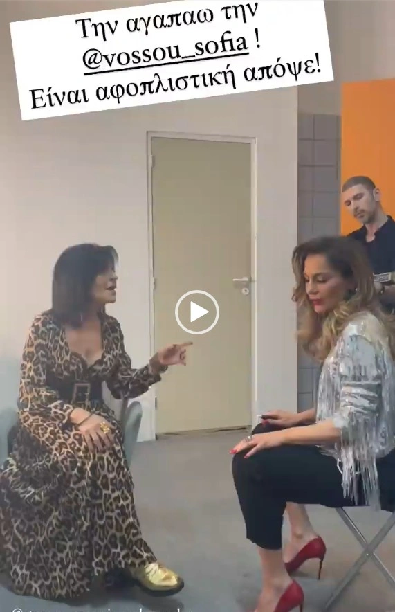 Η Δέσποινα Βανδή δημοσίευσε ένα βίντεο σε insta story όπου τη βλέπουμε να τραγουδάει α καπέλα παρέα με τη Σοφία Βόσσου. Οι δυο τους ερμηνεύουν το γνωστό «Φιλαράκι». Στα βίντεο που δημοσίευσε η Δέσποινα Βανδή εξέφρασε την αγάπη που έχει στο πρόσωπο της Σοφίας Βόσσου. Μάλιστα, στο πρώτο story έγραψε: «Δεν ξεχνάω ποτέ πόσο με βοήθησες στο ξεκίνημά μου».