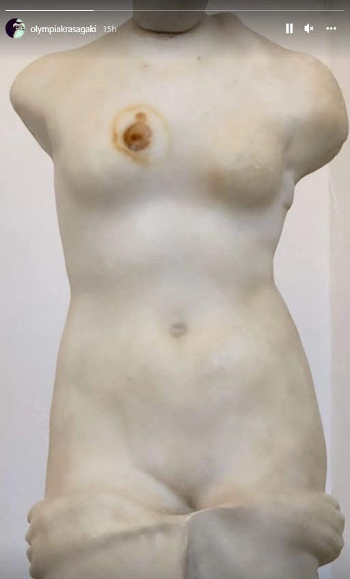 Λίγο αργότερα μοιράστηκε ένα στόρι με ένα άγαλμα με ένα σημάδι στην περιοχή του στήθους, θέλοντας ίσως να εξηγήσει το πρόβλημα που αντιμετωπίζει η ίδια.