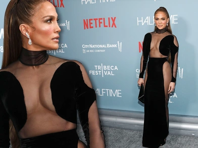 Η Τζένιφερ Λόπεζ έκανε μία εκθαμβωτική εμφάνιση στο Φεστιβάλ Tribeca, στην πρεμιέρα του ντοκιμαντέρ «Jennifer Lopez: Halftime», αποδεικνύοντας ότι στα 52 της χρόνια είναι στην καλύτερη της φάση. Η Τζένιφερ Λόπεζ φόρεσε ένα μαύρο βελούδινο, μακρύ φόρεμα με διαφάνειες που αγκάλιαζε τις καμπύλες της και αναδεικνύει τους κοιλιακούς της και το συνδύασε με ασημένια σκουλαρίκια και ένα μαύρο τσαντάκι.