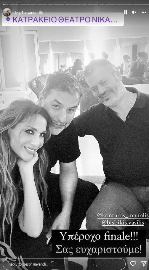 Από δίπλα της δεν μπορούσε να λείπει ο σύντροφός της Βασίλης Μπισμπίκης. Στη φωτογραφία που ανέβασε η τραγουδίστρια ήταν μαζί τους και ο Μανώλης Κονταρός.