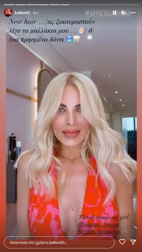 Βέβαια, εάν κρίνουμε από το επόμενο story της, μάλλον δεν ευχαριστήθηκε και τόσο την ανανέωση αφού έπρεπε να πάει στον οδοντίατρο για απονεύρωση και το ύφος της μαρτυρούσε την ταλαιπωρία.