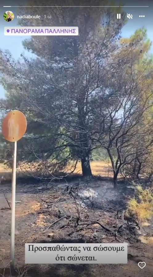 Ξέσπασε μέσα από το προφίλ της στο Instagram η Νάντια Μπουλέ, η οποία μένει κοντά στο Πανόραμα της Παλλήνης και είδε τη φωτιά να πλησιάζει επικίνδυνα το σπίτι της, βάζοντας σε κίνδυνο τη ζωή τη δική της και των κατοίκων της περιοχής.