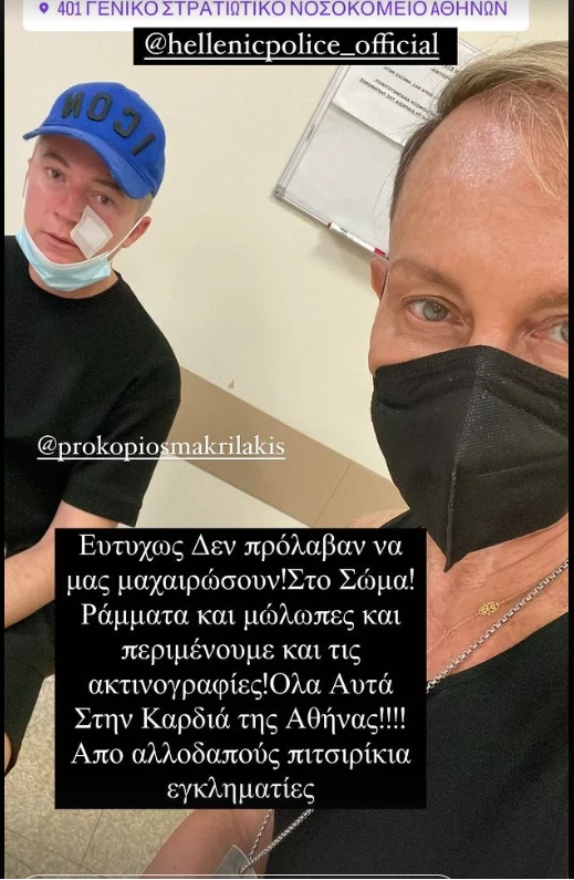 Στη συνέχεια ο Βασίλειος Κωστέτσος δημοσίευσε φωτογραφίες με εκείνον και τον φίλο του στο νοσοκομείο να δέχονται τις πρώτες βοήθειες.