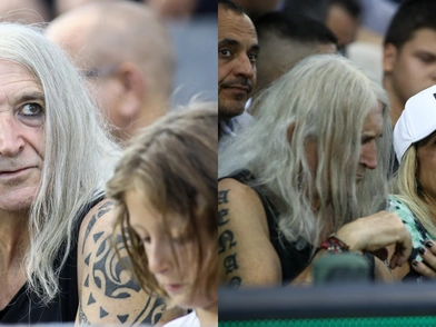 Νωρίτερα, η κόρη του Σοφία Καρβέλα, ανέβασε μια φωτογραφία με τον πατέρα της, σχολιάζοντας ένα μαύρο τσαντάκι που κρατούσε, επευφημώντας τη ροκ του εμφάνιση: «Ο μπαμπάς έχει γούστο».