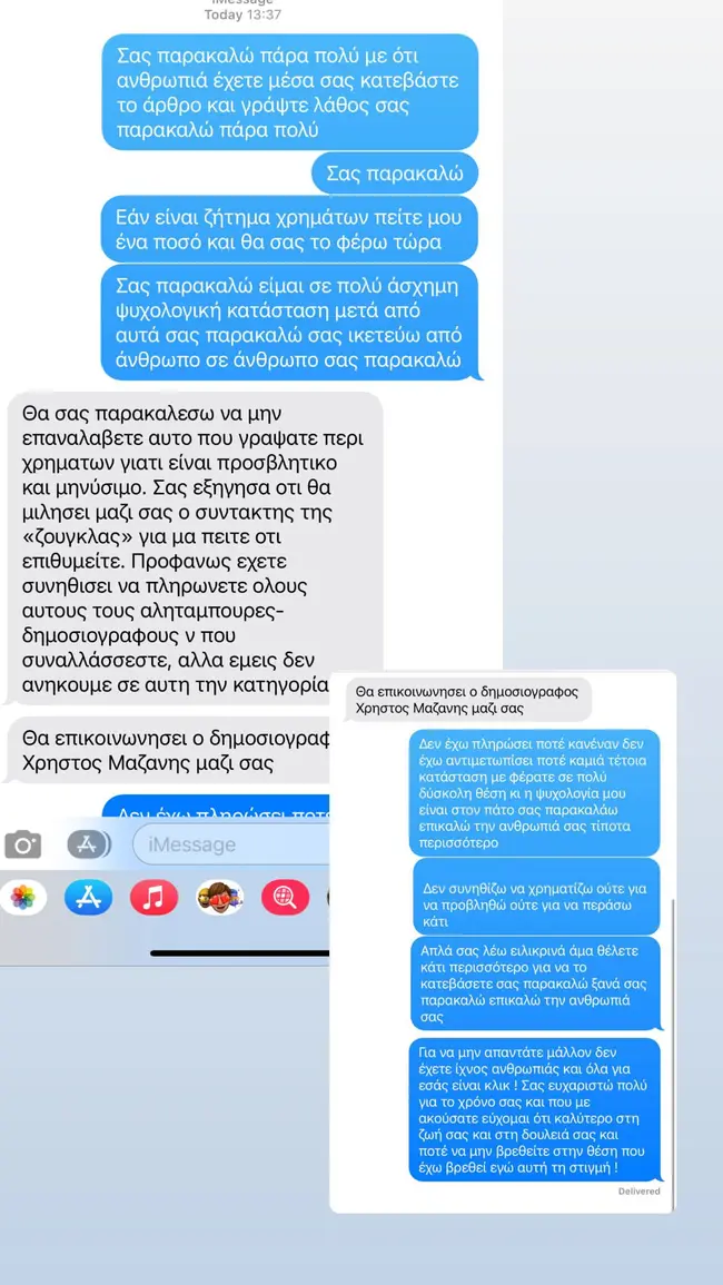 Στη συνέχεια ωστόσο το story αυτό κατέβηκε από τον λογαριασμό της και το μοντέλο, δημοσίευσε την εξής συνομιλία που είχε με ειδησεογραφικό σάιτ, καθώς και μερικά stories ακόμη στα οποία αναφέρει ότι «την κατέστρεψαν και έχουν αναστατώσει όλη της την οικογένεια».