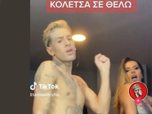 Στο βίντεο που ανάρτησε ο χορευτής στον προσωπικό του λογαριασμό στο TikTok, ξεκινάει τη χορογραφία φορώντας μονάχα ένα αστραφτερό παντελόνι κι η Χριστίνα Κολέτσα δίπλα του, με ένα μίνι ασημένιο φόρεμα, ακολουθεί τις κινήσεις του.
