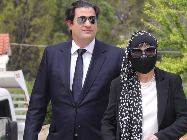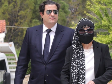 Η Κατιάνα Μπαλανίκα έφτασε στο κοιμητήριο, προκειμένου να πει το τελευταίο «αντίο» στον γνωστό επιχειρηματία, υποβασταζόμενη από τον γιο της, Μάκη, που απέκτησε από τον γάμο της με τον εκλιπόντα επιχειρηματία.