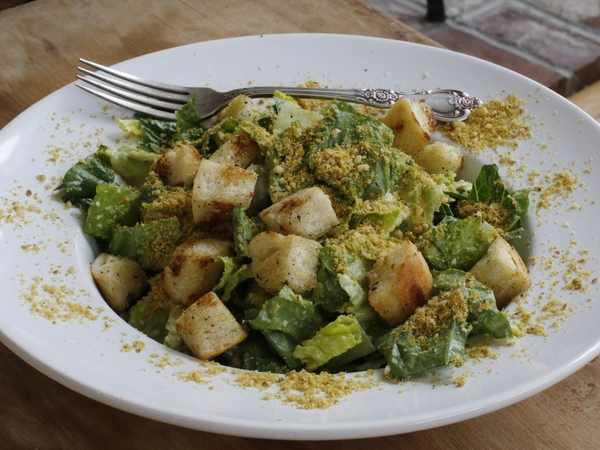 Μαρούλι, κρουτόν, λεμόνι, ελαιόλαδο, αυγό, σως, σκόρδο, μουστάρδα ντιζόν, παρμεζάνα, μαύρο πιπέρι και...πάστα αντζούγιας. Αυτή είναι -θεωρητικά τουλάχιστον- η αυθεντική συνταγή της περίφημης σαλάτας του Καίσαρα, όπως φαίνεται ότι σερβιρίστηκε για πρώτη φορά από έναν Ιταλό μετανάστη με ένα πολύ επιτυχημένο εστιατόριο στην κεντρική Αμερική. Σύμφωνα με μία εκδοχή, η πάστα αντζούγιας προστέθηκε 2-3 χρόνια μετά την πρώτη εμφάνισή της.