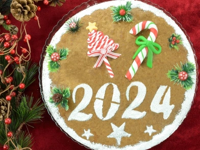 - Πασπαλίζουμε με ζάχαρη άχνη. Αν θέλετε να γράψετε ευχές στη βασιλόπιτα, φτιάξτε ένα εύκολο γλάσο.