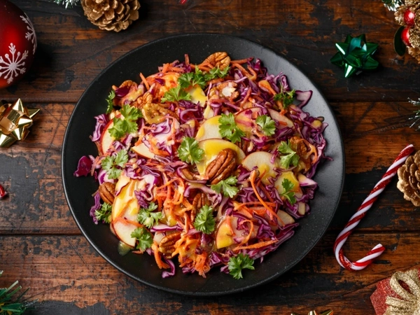 Μία φρέσκια, γευστική και ιδανική φρουτοσαλάτα για τον χειμώνα. Τα υλικά είναι απλά και νόστιμα και το μόνο που χρειάζεται είναι να τα ψιλοκόψετε όλα.