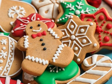 - Αφήνουμε τη ζύμη να ξεκουραστεί για μισή ώρα περίπου. Ανοίγουμε φύλλο πάχους 2 εκ. σε ελαφρώς αλευρωμένη επιφάνεια, κόβουμε διάφορα χριστουγεννιάτικα σχήματα, τα τοποθετούμε σε χαρτί ψησίματος και ψήνουμε στον αέρα σε προθερμασμένο φούρνο στους 160 – 170 για 20 λεπτά.
