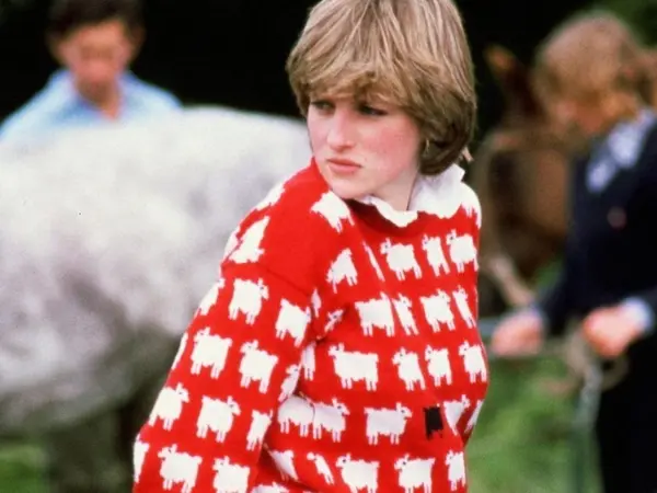 Το κόκκινο πουλόβερ με τα προβατάκια έγινε συνώνυμο με την ποπ κουλτούρα των 80s, αφού το φόρεσε η 19χρονη τότε Νταϊάνα. Ήταν τον Ιούνιο του 1981, λίγες μέρες μετά την ανακοίνωση του αρραβώνα της με τον Κάρολο.