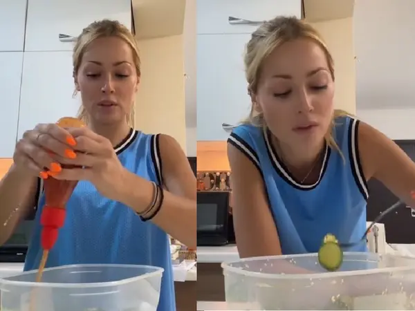 Στο viral κλιπ η Ελένη Βουλγαράκη προετοιμάζει μία σαλάτα αγγουριού fusion έμπνευσης, με καρυκεύματα, τσίλι και σόγια, που είδε στα social media, με το αποτέλεσμα να την αφήνει ικανοποιημένη, και όχι μόνο.