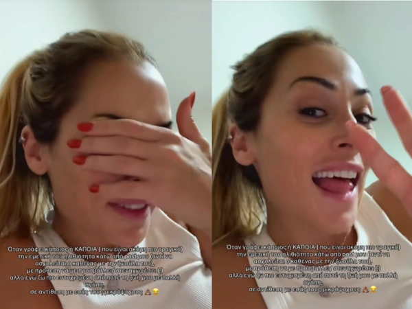 «Όταν γράφει κάποιος ή ΚΑΠΟΙΑ (που είναι ακόμα πιο τραγικό) την εμετική του ηλιθιότητα κάτω από post μου (αντί να ασχολείται ο καθένας με τη ζωούλα του) με πρόθεση να με προσβάλει/στεναχωρήσει (;) αλλά εγώ ζω πιο ευτυχισμένη από ποτέ τη ζωή μου με πολλή αγάπη σε αντίθεση με τους μικρόψυχους” έγραψε χαρακτηριστικά στην ανάρτησή της η Ελένη Βουλγαράκη.
