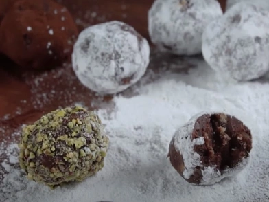- Ρολάρουμε τα τρουφάκια σοκολάτας στην επιθυμητή επικάλυψη. Η επικάλυψη για τα τρουφάκια μπορεί να είναι κακάο, τρούφα, τρίμματα σοκολάτας, άχνη ζάχαρη ή αλεσμένοι ξηροί καρποί.
