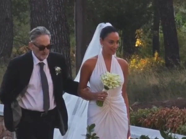 Από τα πρώτα λεπτά της άφιξης της στην Εκκλησία, η νύφη εντυπωσίασε φορώντας μια δημιουργία του Χρήστου Κωσταρέλλου, όπως και η Χρυσή Βαρδινογιάννη όταν παντρεύτηκε τον Νικόλαο Ντε Γκρες.